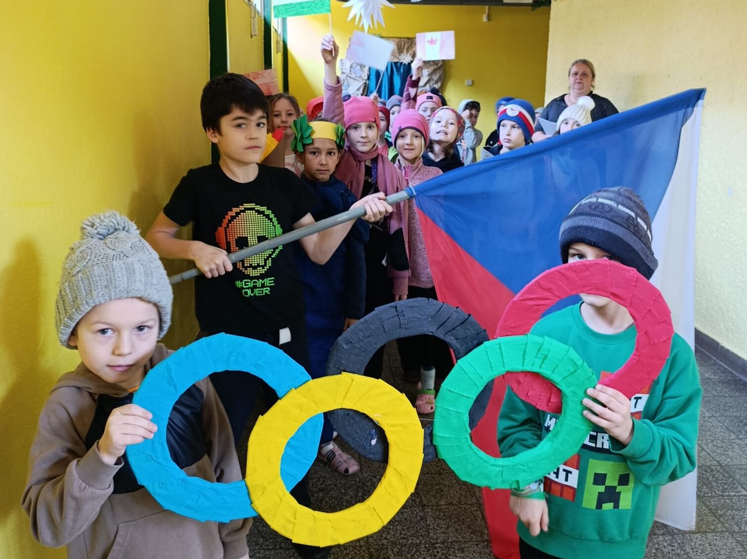 V pátek 27.2.2025 jsme se vydali do tělocvičny zakončit čtrnáctidenní snažení. Děti si ve třídě vyráběly vlajky, jmenovky, reprezentační dresy a vymyslely pokřik. Dokonce nám slečna ušila polštářky na biatlon. V tělocvičně na ně čekalo 5. disciplín - biatlon, curling, jízda na